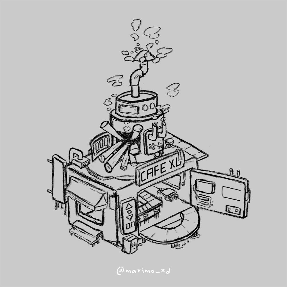 Isometric drawing of a cafe inspired by microwave